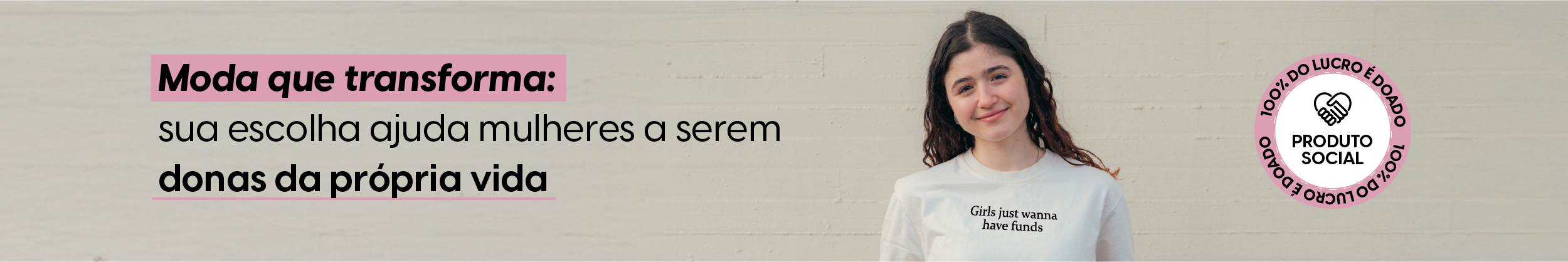 A Coleção Just Wanna Be é um grito de liberdade, ambição e identidade. Frases que afirmam o que sempre nos foi negado: ser quem quisermos, sem pedir licença. Seja CEO, rica ou simplesmente livre. Cada peça veste um desejo legítimo e ajuda a financiar o recomeço de outras mulheres.